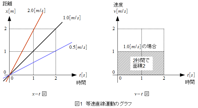 等速直線運動は図1に示す2つのグラフに表されます。
