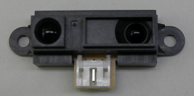 距離センサには様々なセンサがありますが、ここでは、シャープの赤外線を利用した距離センサ(GP2Y0A21YK)を使用します。この距離センサは、超音波センサと違い、非線形な出力となりますので、プログラムで補正が必要になります。