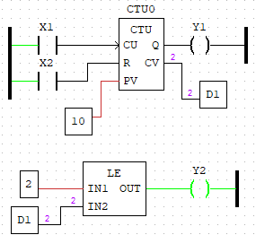 2022-06-18 OpenPLCでよく使う関数マニュアル(Comparison:LE) OpenPLC シーケンス シーケンサー シーケンス制御 制御 amazon kindle版の「OpecPLC」に関する本を出版しました。 そちらもご覧になって下さい。 Comparison:LE 説明:LEIN1の値がIN2の値以下のとき、OUTがONする。 入出力の種類 入力 ANY:IN1 ANY:IN2 出力 BOOL:OUT シミュレータによる動作確認 接点の種類 X1をONすると、カウントアップしてD1の値が増加。 2がD1の値以下のとき、Y2がON。